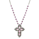 1928 Spiritual Antiqued Pewter Octagon German Glass Stones And Beaded Cross Necklace 30