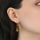Faceted bronze glass beads shimmer with a soft metallic glow, catching light beautifully with every movement. The drop design features delicate 14k gold dipped accents and a classic fishhook closure for easy wear. A perfect accessory for adding warmth and subtle sophistication to any outfit.