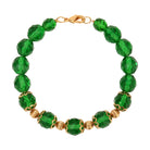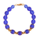A strand of rich faceted beads creates a vibrant glow, catching the light with every movement. Textured gold-toned beads and petaled bead caps add a touch of vintage character and warm contrast. Finished with a classic clasp, the bracelet offers a striking interplay of color and detail.