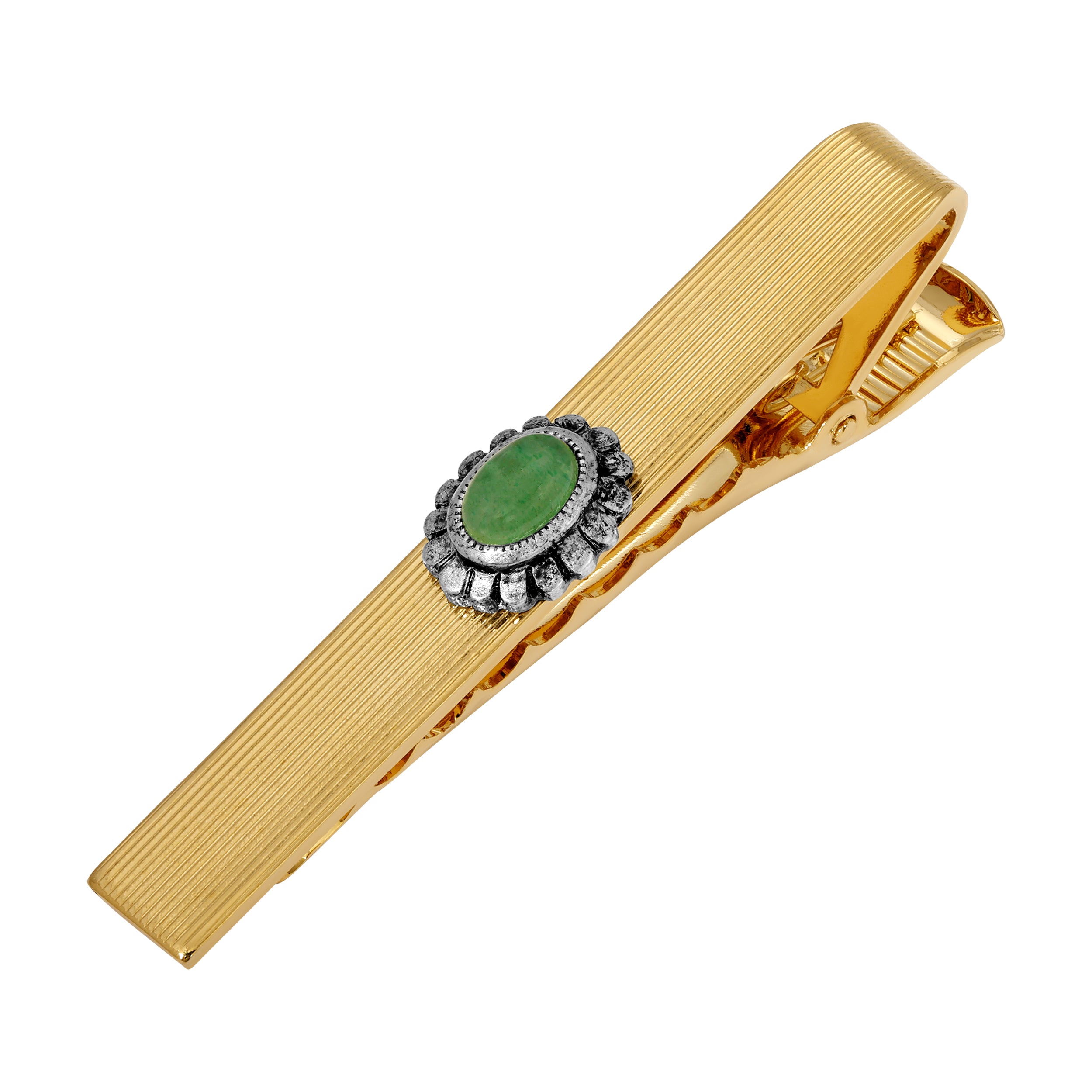Oval Semi Precious Green Aventurine Gold Tie Clip
