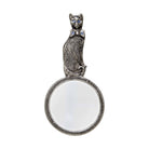 This handheld round glass magnifier showcases a playful cat design, complete with a charming bowtie and delicate crystal accents that sparkle subtly. The intricate detailing of the feline adds whimsy and elegance, making it a stylish yet functional accessory. Its compact size and sophisticated craftsmanship make it the perfect piece for both practical use and display.