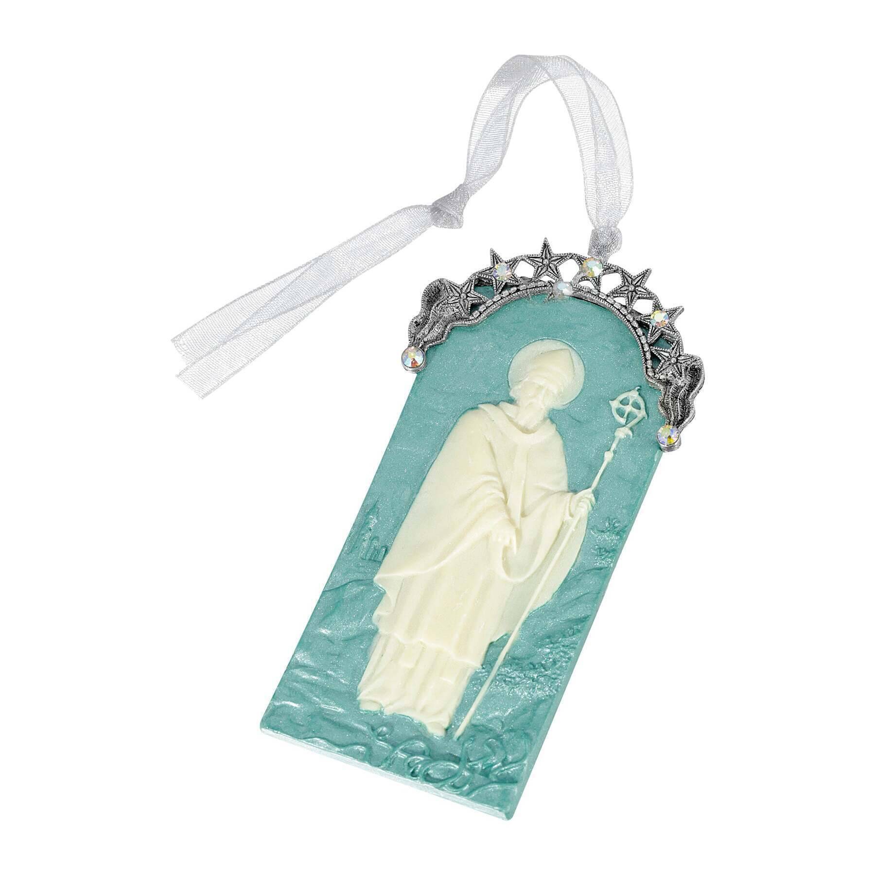 St. Patrick of Ireland is one of the world's most popular saints. The Christmas ornament is made of a green color resin with a raised ivory color cameo design and a silver tone top frame. It's the perfect decoration for any Christmas tree sure to reminds one individual can influence and change the world. Perfect for gift giving!