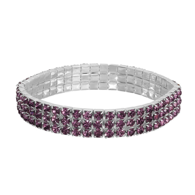 2028 Jewelry 3-Row Rhinestone Stretch Bracelet