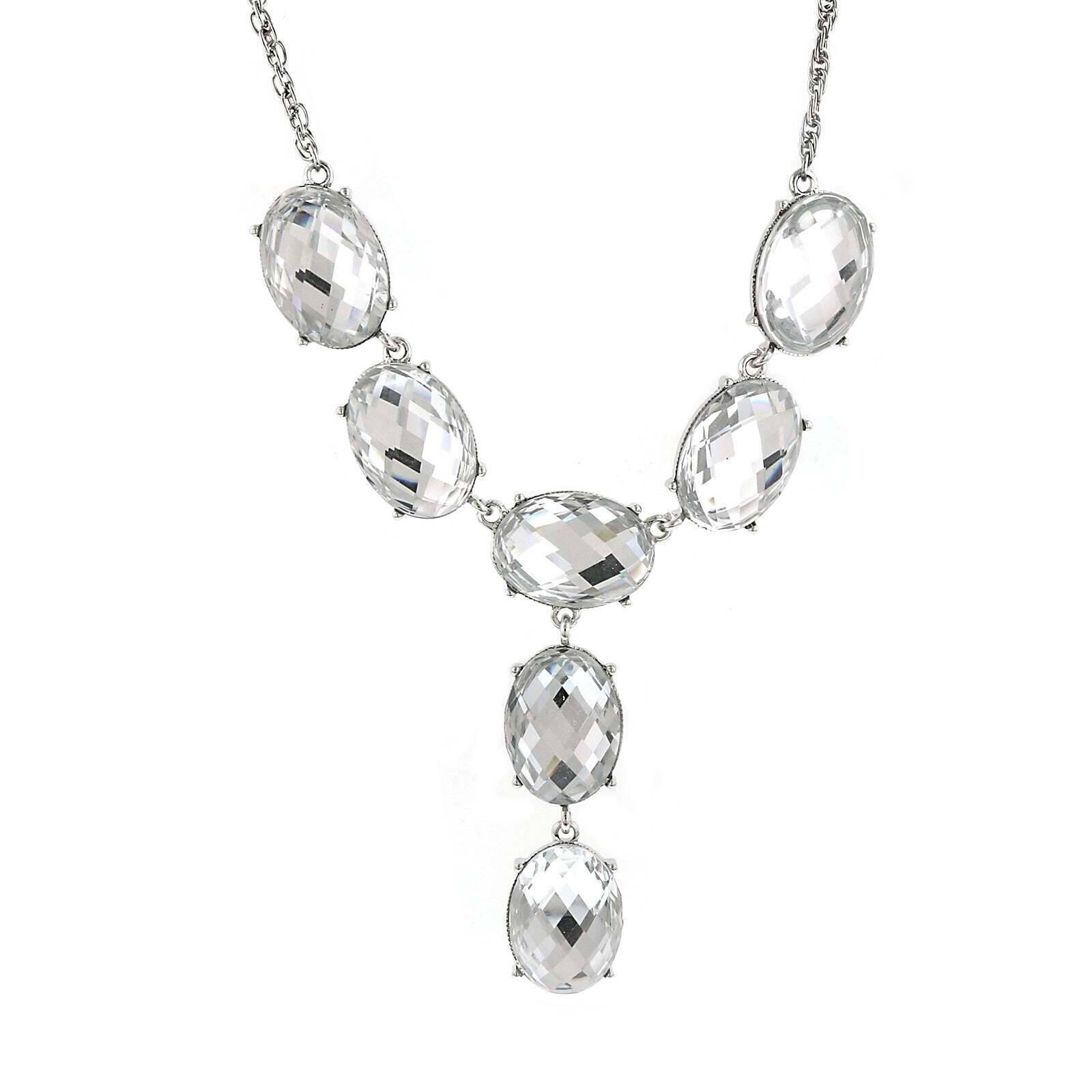 2028 Jewelry Three Row Oval Faceted Stone Bib Necklace 16" + 3" Extender