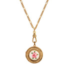 1928 Jewelry Artisan Pink Rosebud Swivel Photo Locket Necklace 28"