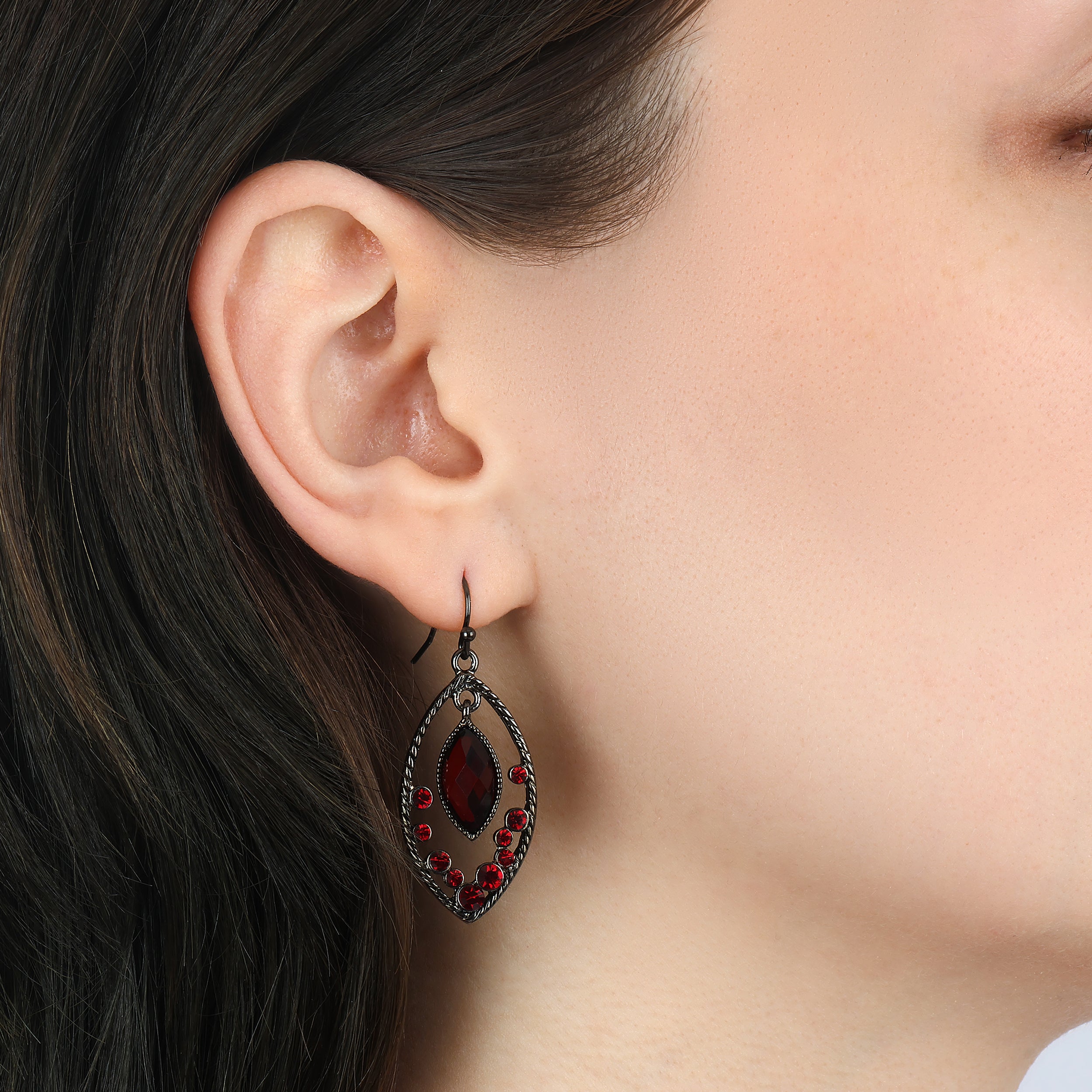 1928 Jewelry Ruby Red Stones Black Drop Earrings