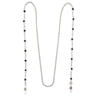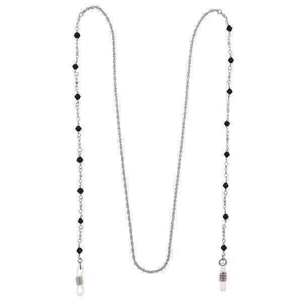 Featuring a silver tone chain decorated with jet black beads. A fabulous way to keep your glasses conveniently close at all times.