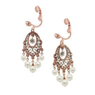 1928 Jewelry Two Tone Faux Pearl Crystal Accent Chandelier Clip On Earrings