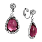 1928 Jewelry Amethyst Teardrop Stone Drop Clip On Earrings