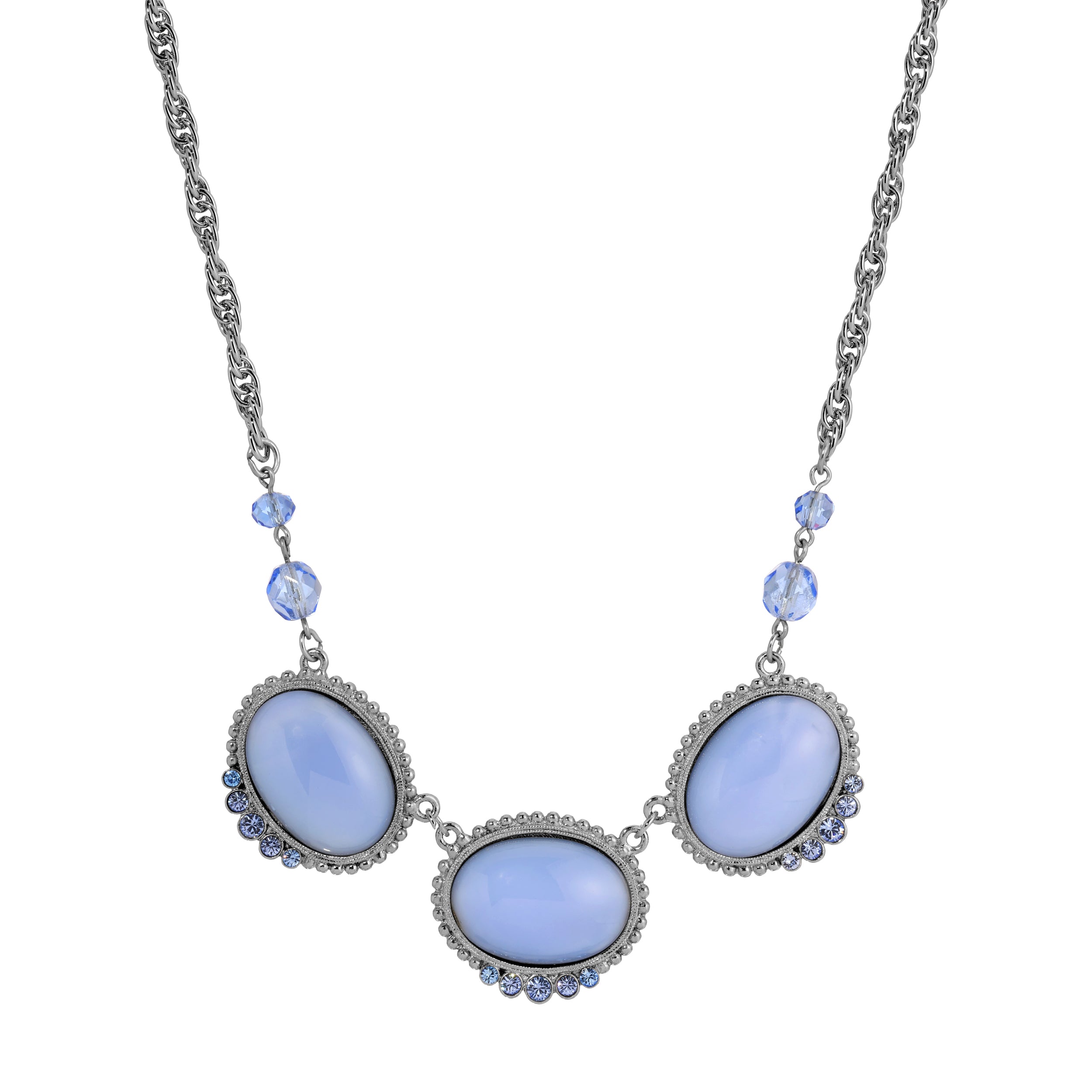 1928 Jewelry Blue Moonstone Light Sapphire Crystal Bib Necklace 16" + 3" Extension