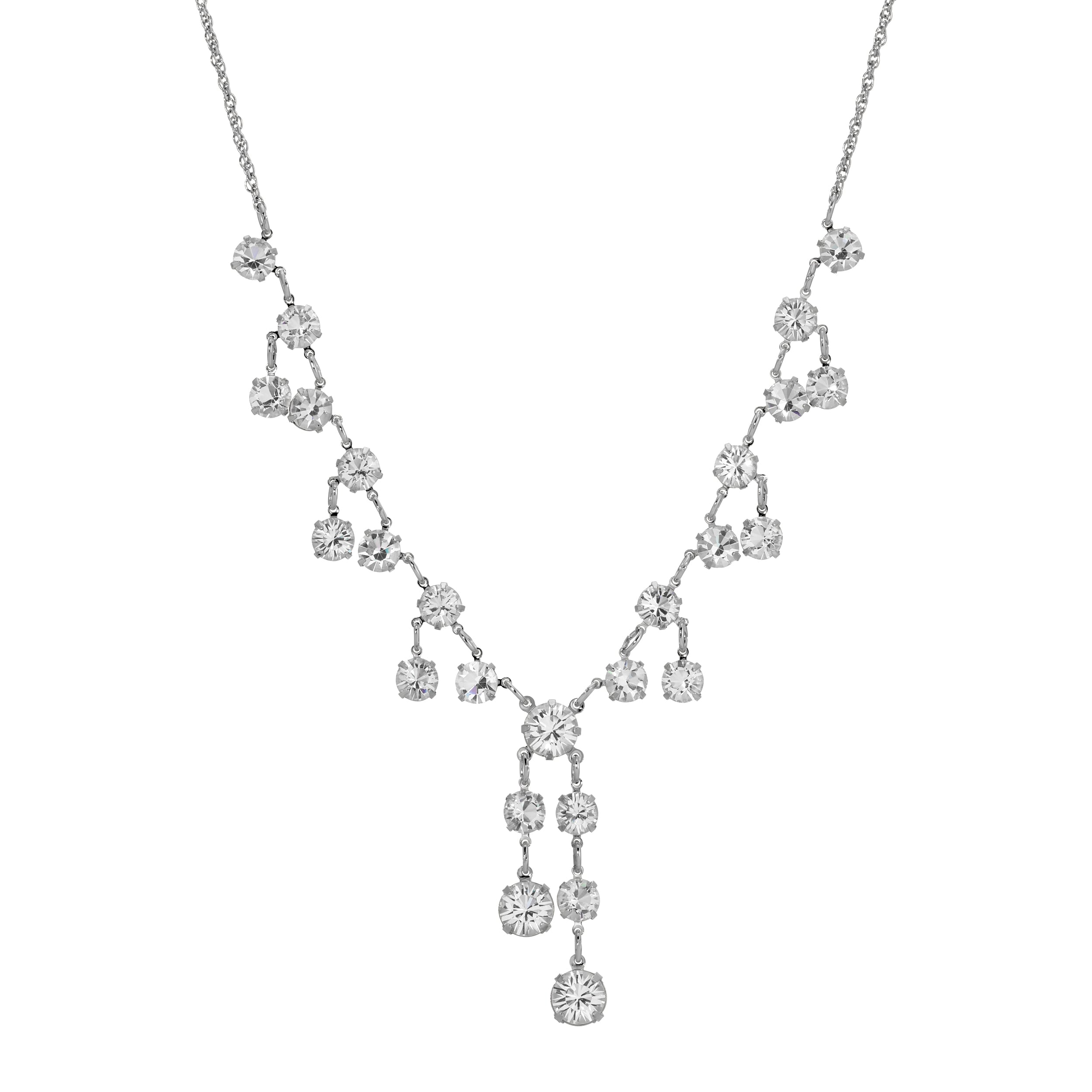 1928 Jewelry Cascading Austrian Crystal Vintage Bib Necklace 18"