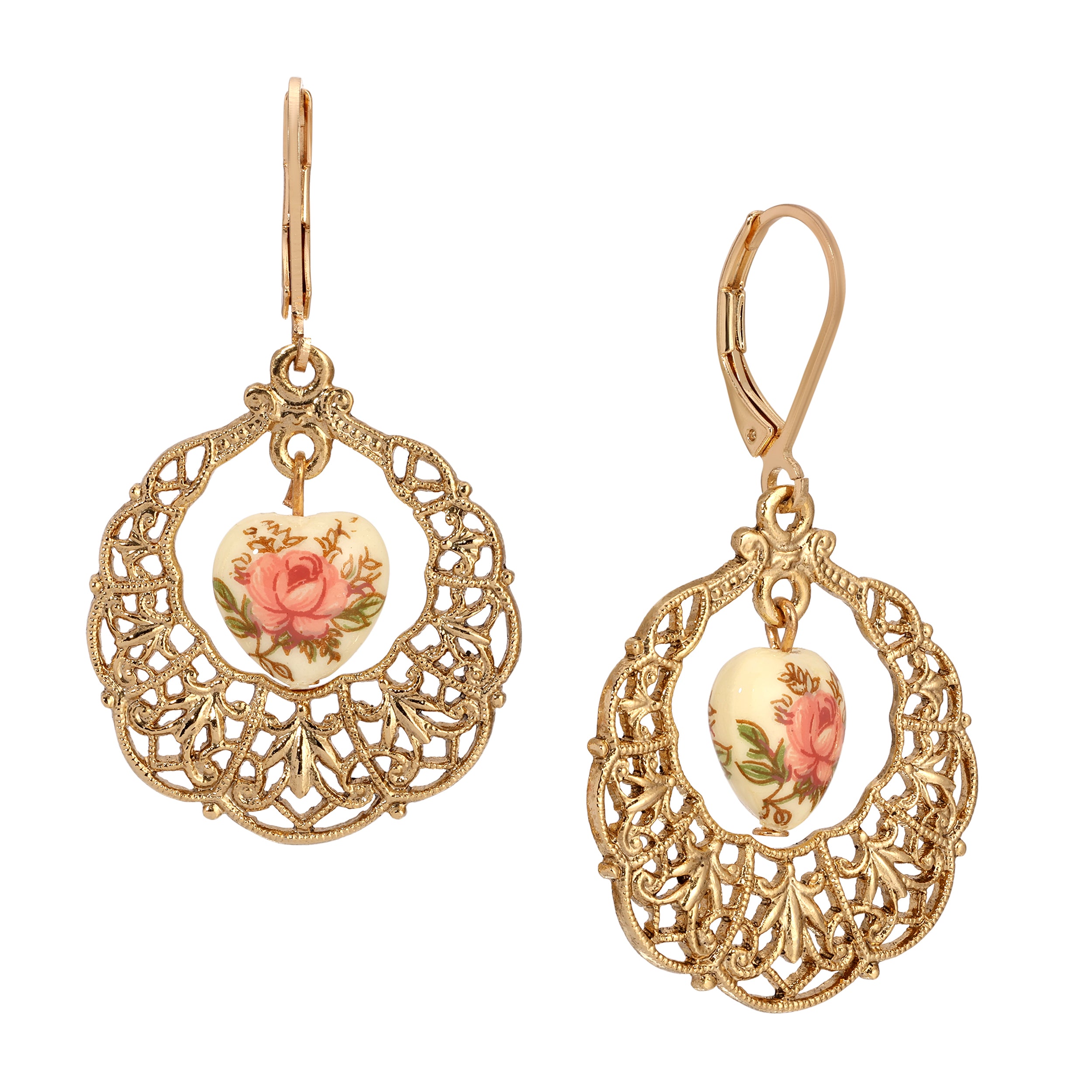 1928 Jewelry Desert Rose Hearts Round Filigree Drop Earrings