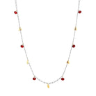 This 40" necklace features delicate silver-tone links accented with faceted red beads and polished gold charms for a striking two-tone look. Its long, lightweight design makes it perfect for layering or wearing on its own for subtle movement and sparkle. A versatile piece that brings a hint of color and charm to both everyday and evening styles.