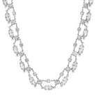 A mix of marquise-cut and round Austrian crystals creates a graceful pattern that drapes softly along the neckline. Each faceted stone catches the light beautifully, giving the piece a refined sparkle with gentle movement. The silver-tone setting adds a touch of vintage charm, making the necklace an elegant choice for both special occasions and evening wear.