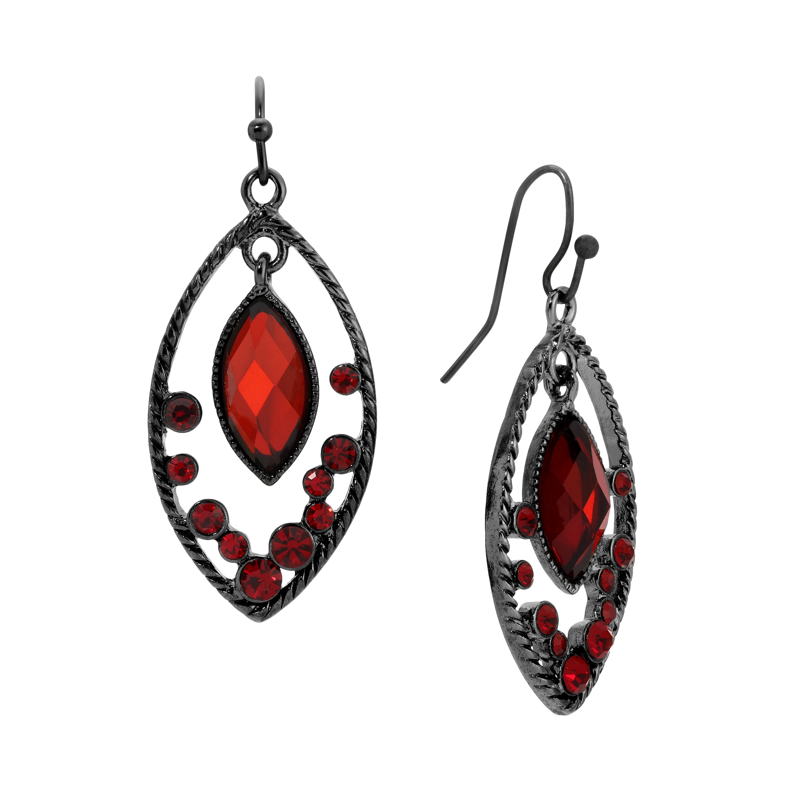 1928 Jewelry Ruby Red Stones Black Drop Earrings