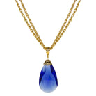 1928 Jewelry Sapphire Briolette Teardrop Glass Crystal Pendant Necklace 16" + 3" Extension