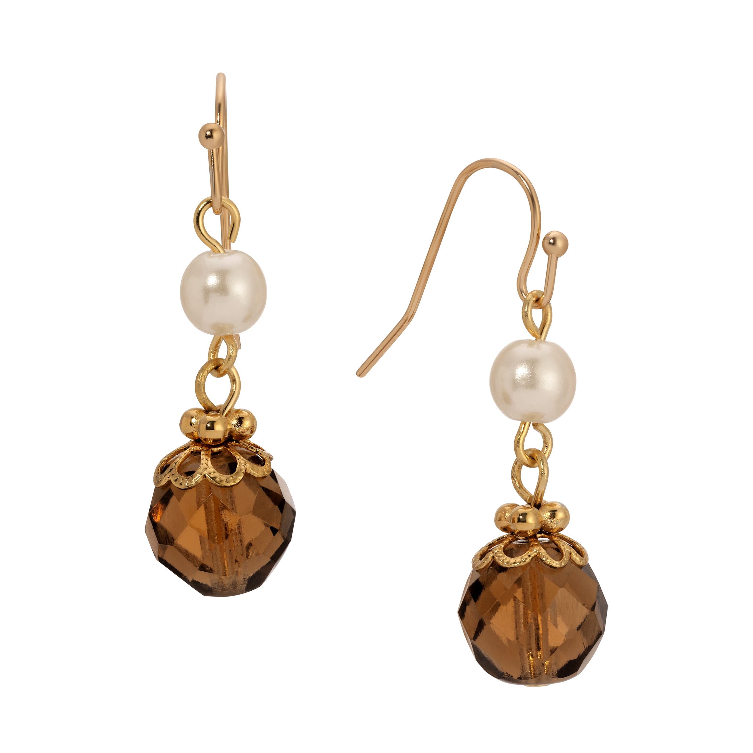1928 Jewelry Autumn Glow Smoked Topaz & Peach Pearl Dangling Earring