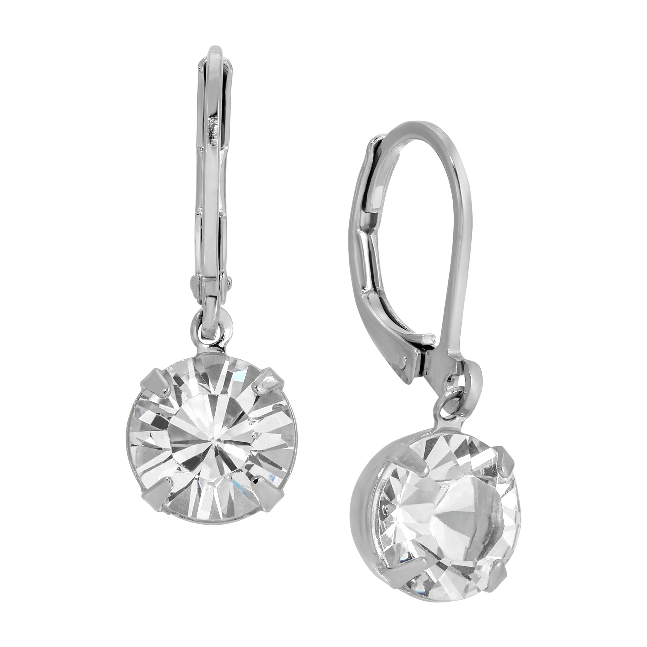 Brilliantly polished Austrian crystals catch the light with every movement, creating a radiant sparkle that draws the eye. The sleek silver-tone lever back design offers both comfort and a secure fit, making them perfect for day-to-night wear. A classic round-cut stone setting adds refined sophistication to any outfit.