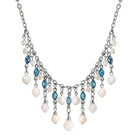 Fashion at its finest and in time for spring and summer! This elegantly designed hand assembled necklace features beautiful white round smooth genuine mother of pearl drops with aqua marine blue navette crystal accents. The cable chain necklaces comes with a 3 inch extension chain, 1928 logo tag and lobster clasp closure for a secure fit.
