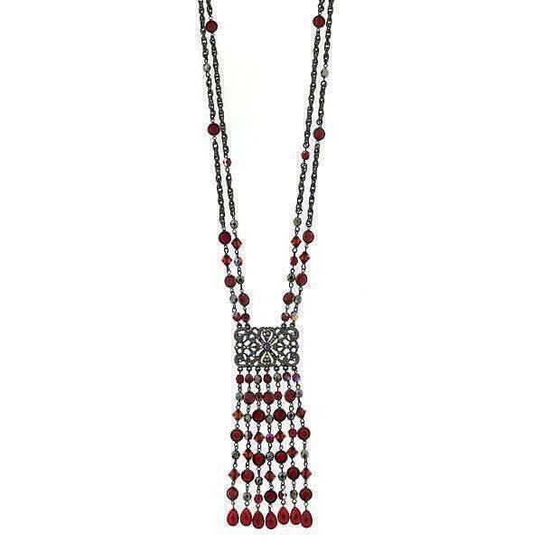 2028 Jewelry Siam Ab Crystal And Hematite Fringe Tassel Necklace 30"