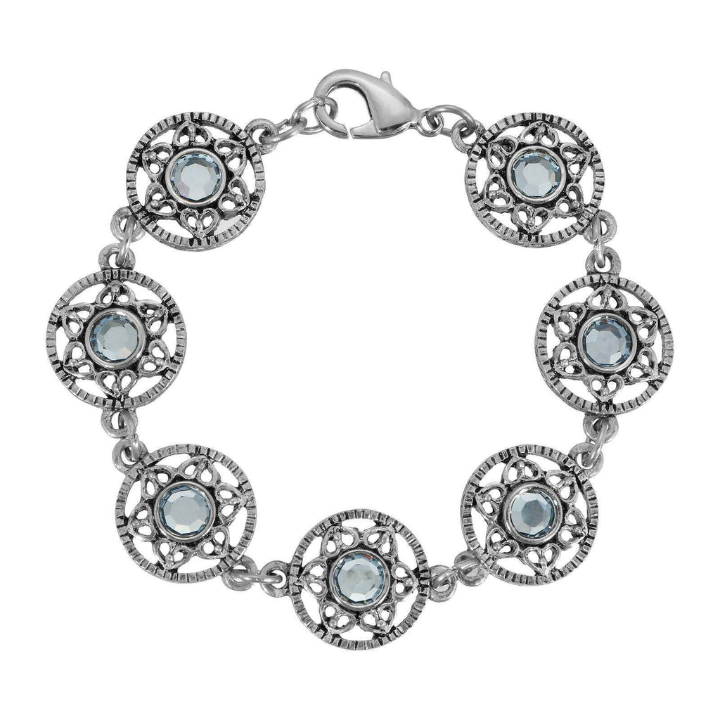 1928 Jewelry Star Disk Light Sapphire Channel Crystal Link Bracelet, 7.25"L