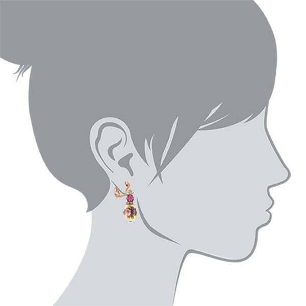 Versatile and romantic these lovely drop earrings are sure to become favorites. An amethyst tone accent bead rests above a simulated porcelain accent with a rose motif. Also available in clip on.