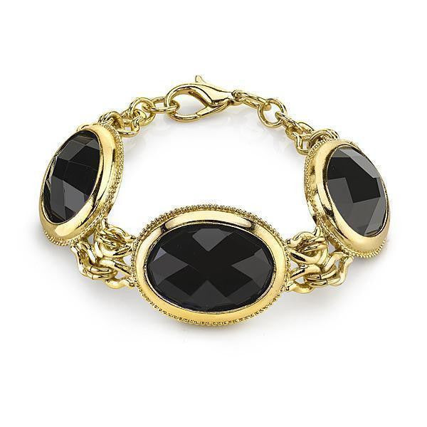 2028 Jewelry Triple Oval Faceted Stone Collar Necklace 16" + 3" Extender