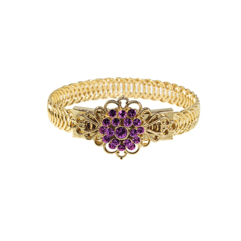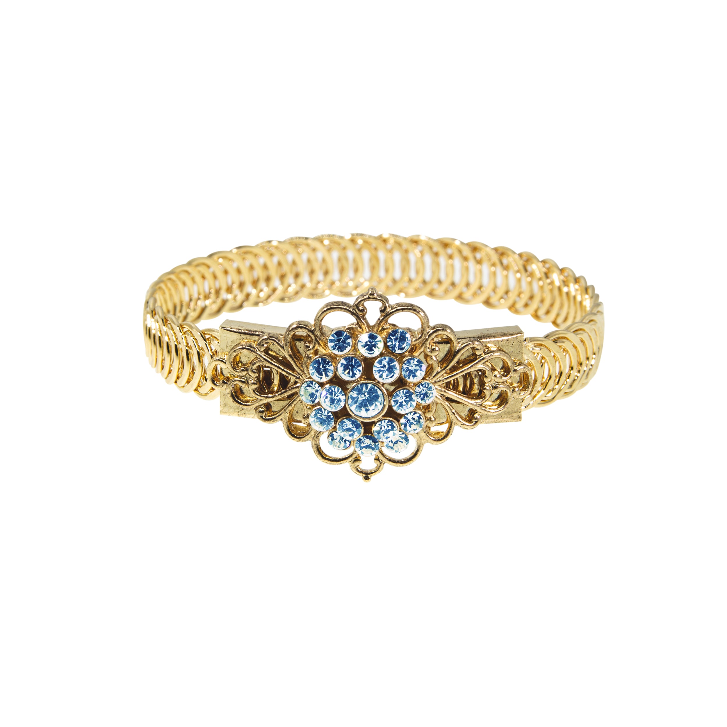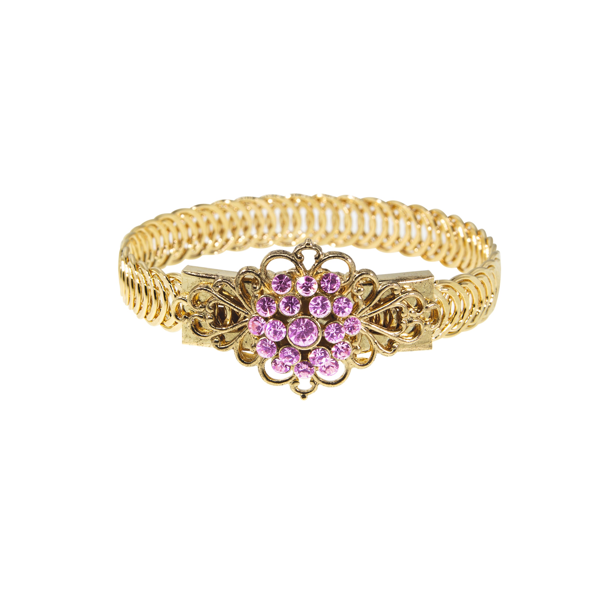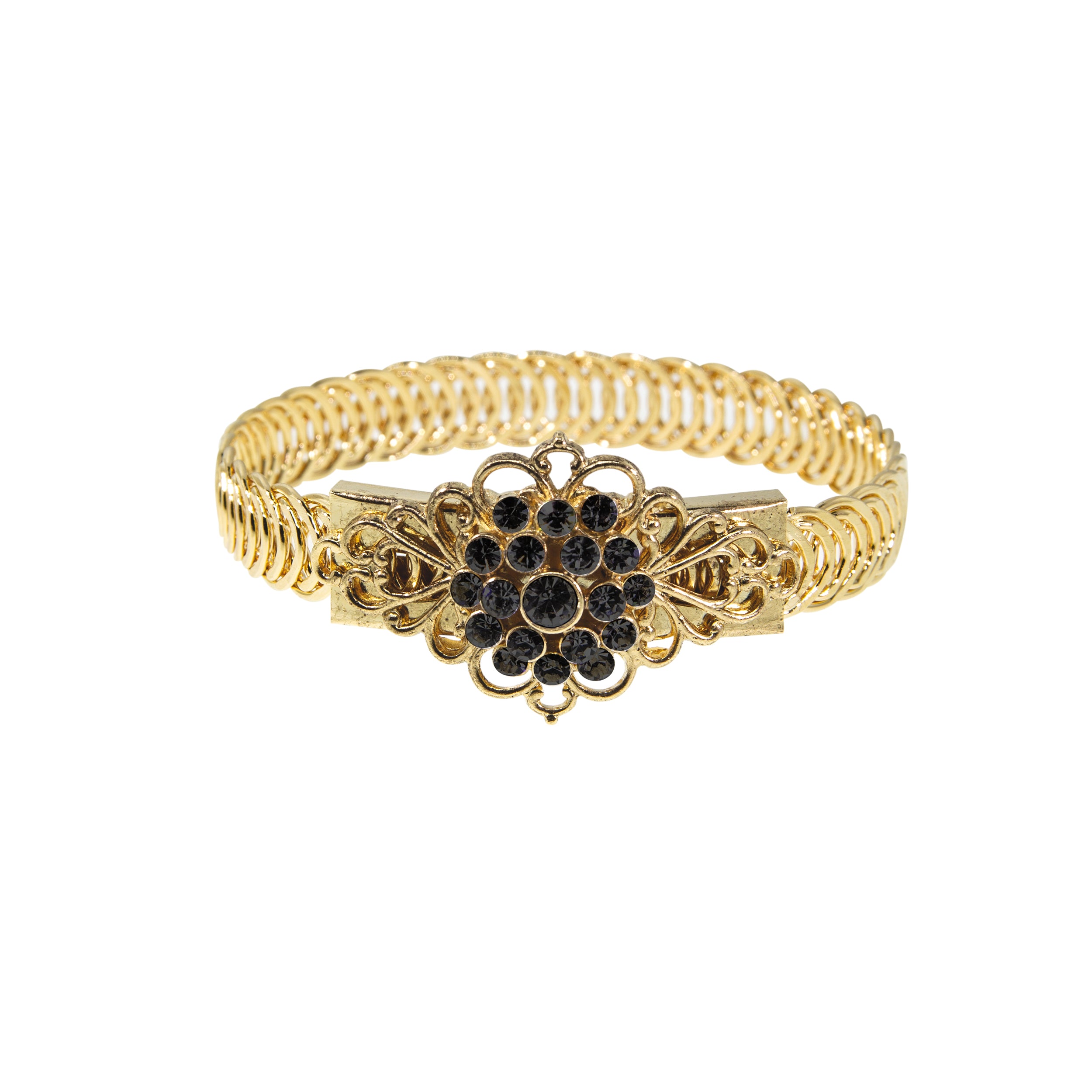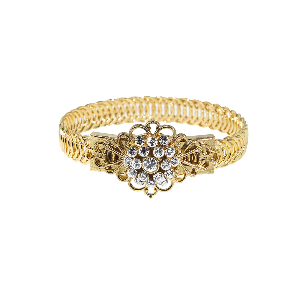 1928 Jewelry Gold Dipped Crystal Flower Overlay Belt Bracelet