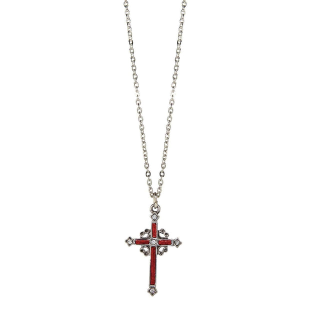 Symbols Of Faith Pewter Hand Enamel Cross With Crystals Pendant Necklace 18"