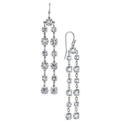 1928 Bridal Genuine Clear Austrian Crystal Linear Drop Earrings