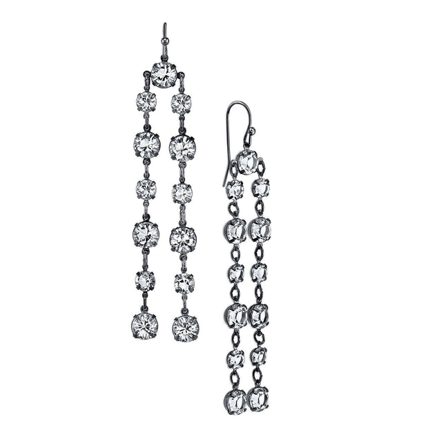 Sweet and stunning, these gorgeous earrings feature linear drops of genuine Austrian Crystal Elements silver tone or black tone linear earrings. A delicate accessory that adds plenty of sparkle and shine.