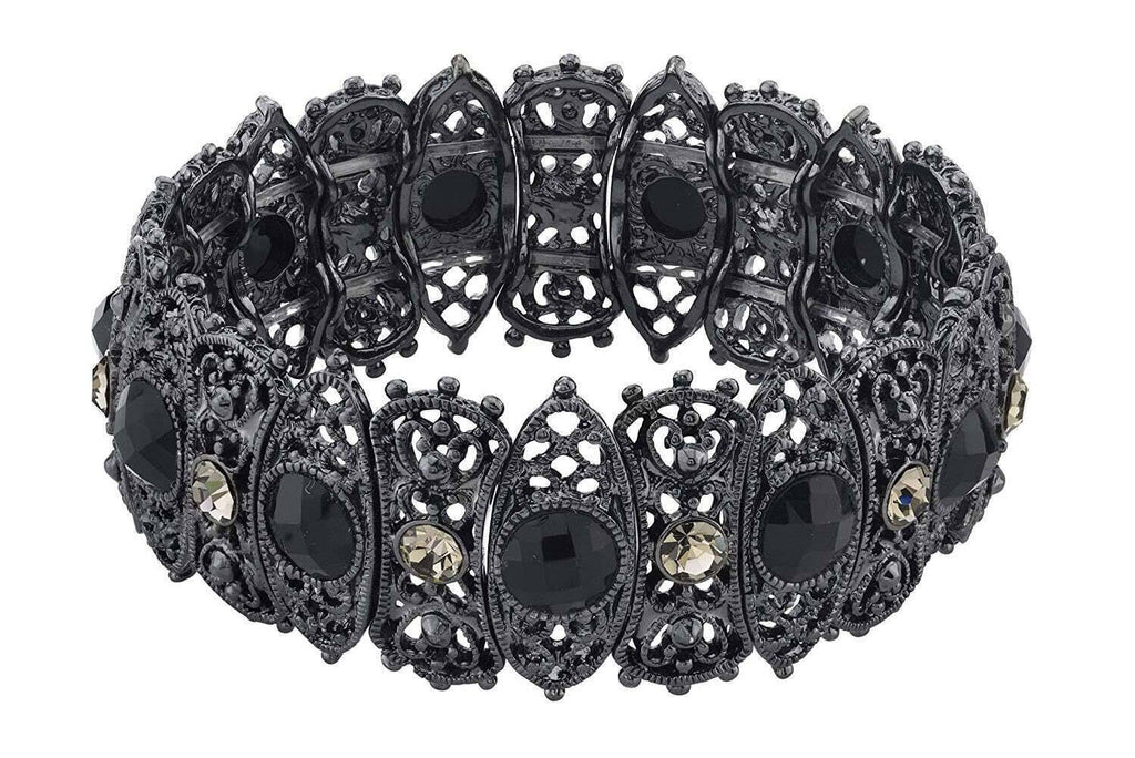 1928 Jewelry Crystal Flower Overlay Belt Bracelet