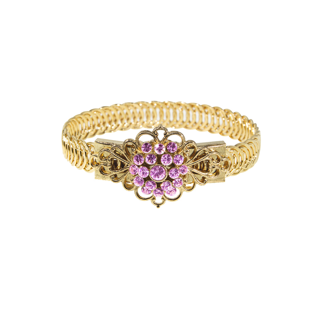 1928 Jewelry Flower Crystal Spring Hinge Gold Cuff Bracelet