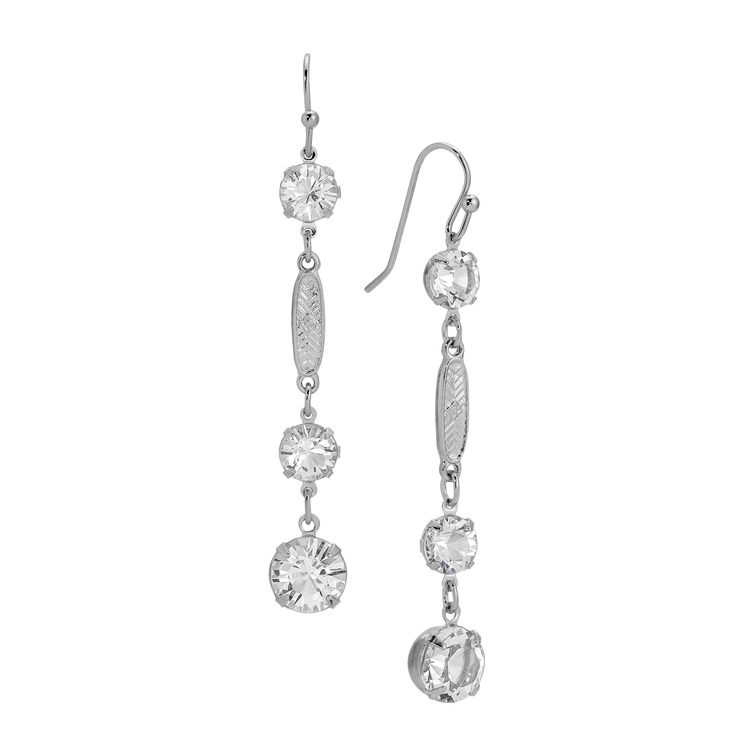 1928 Jewelry Austrian Crystal & Bar Vintage Linear Earrings