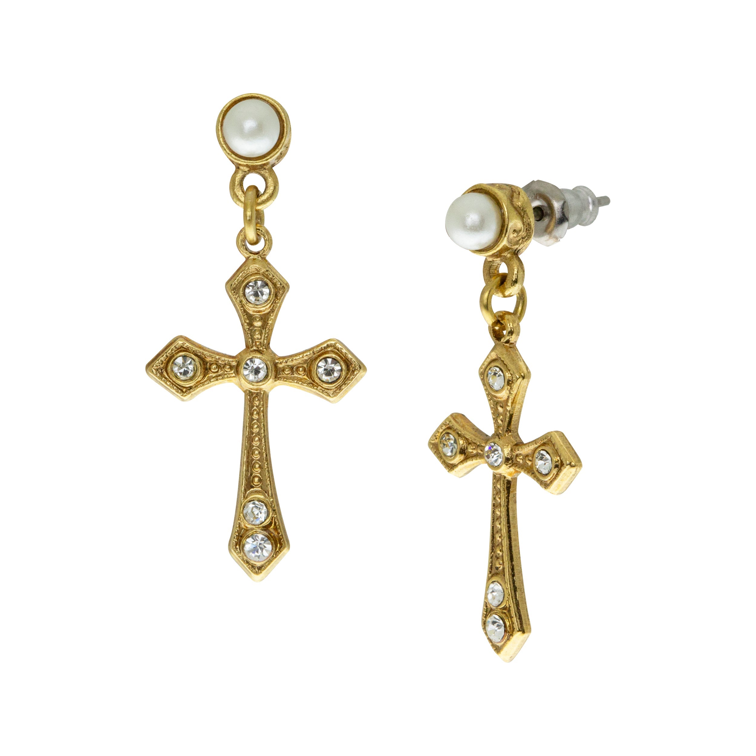 Symbols Of Faith Crystal Cross Stud Drop Earrings