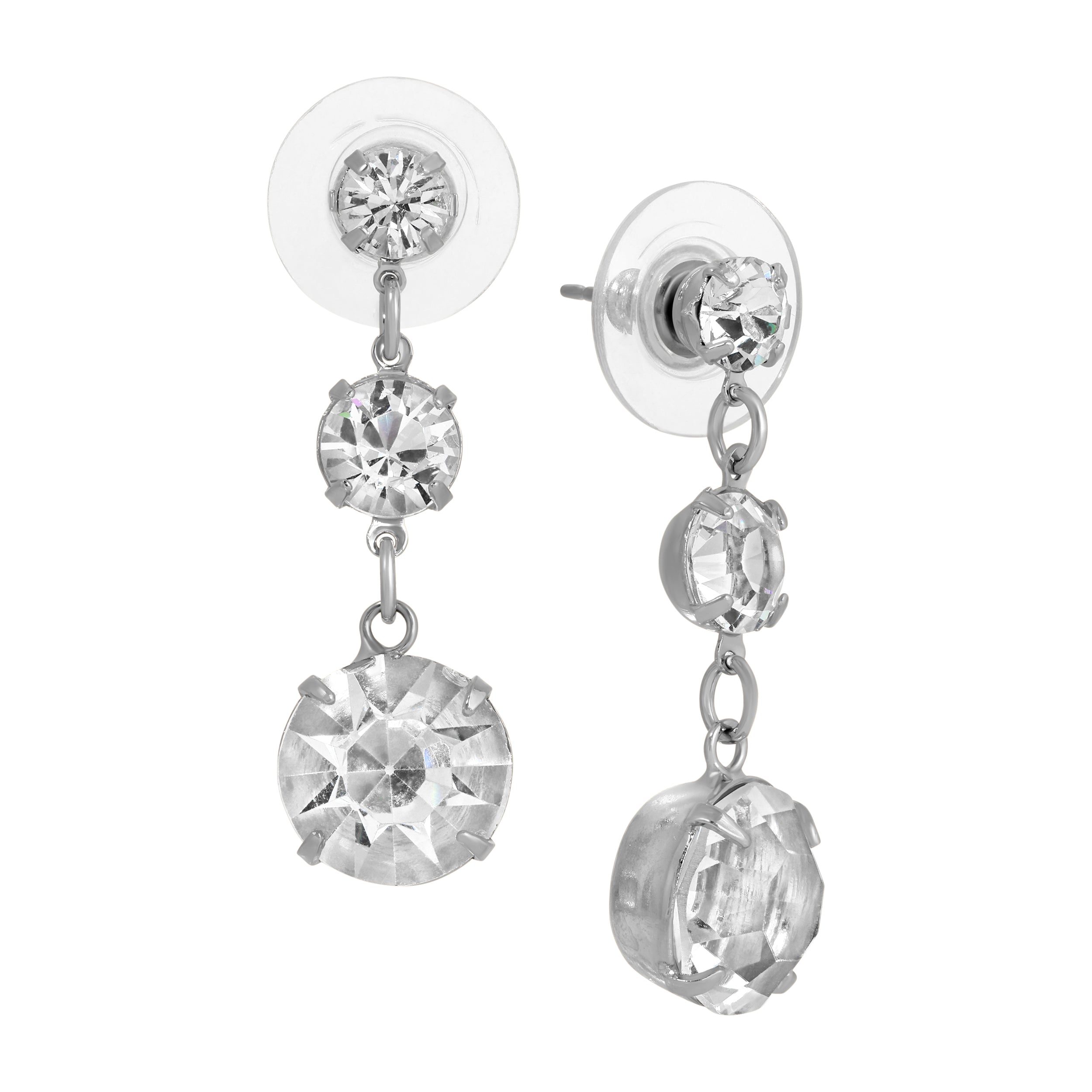 Sparkling Austrian crystals cascade gracefully in a vintage-inspired design that captures light from every angle. The tiered setting creates a refined sense of movement, adding a touch of glamour to any occasion. Finished in a silver-tone setting, each crystal radiates with brilliant clarity and sophistication.