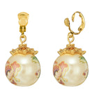 1928 Jewelry Pink Floral Faux Pearl Decal Drop Clip On Earrings