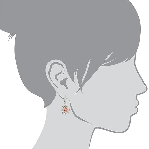 1928 Jewelry Pink Porcelain Rose And Round Crystal Drop Earrings
