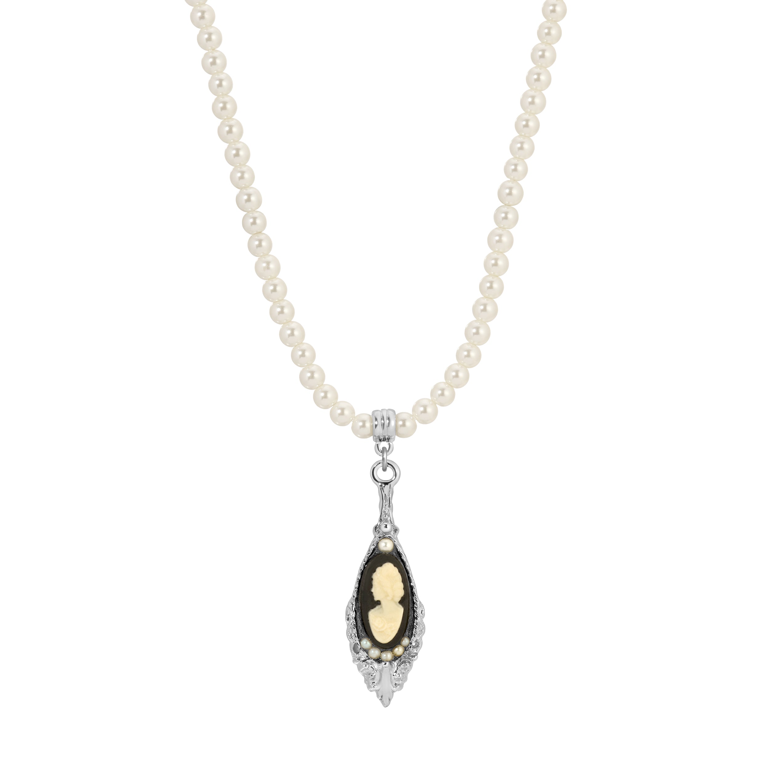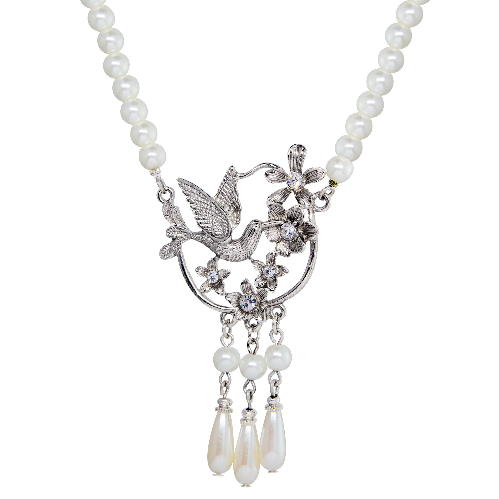 1928 Jewelry Faux Pearl Strand Lux Crystal Teardrop Pendant Necklace 15" + 3" Extension