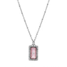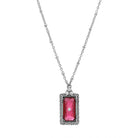 Brilliant and bold, pendant necklace is sure to impress in any setting. Featuring an antiqued pewter vintage rectangular pendant with transparent etched glass stones, accented with a clear crystal. This necklace comes with a lobster clasp closure and available in three colors.