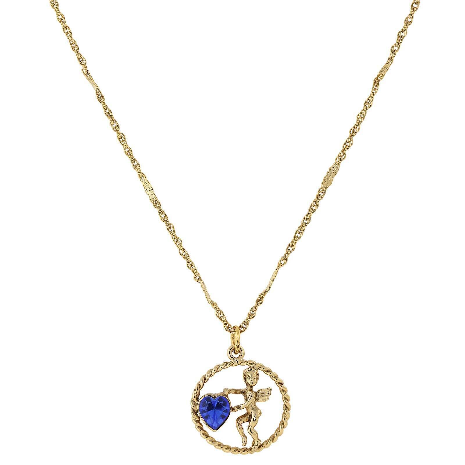 1928 Jewelry Winged Cherub Angel Crystal Heart Pendant Necklace 16" + 3" Extender