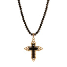 • 14K Gold Dipped Cross Pendant With Black Stone Crystals