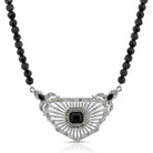 Radiant rays in a polished silver-tone beam from an elegant ebony crystal center and heavily accented with petite marcasite stones. This vintage inspired beauty connects to a multi faceted black bead collar necklace and secures with a lobster clasp.