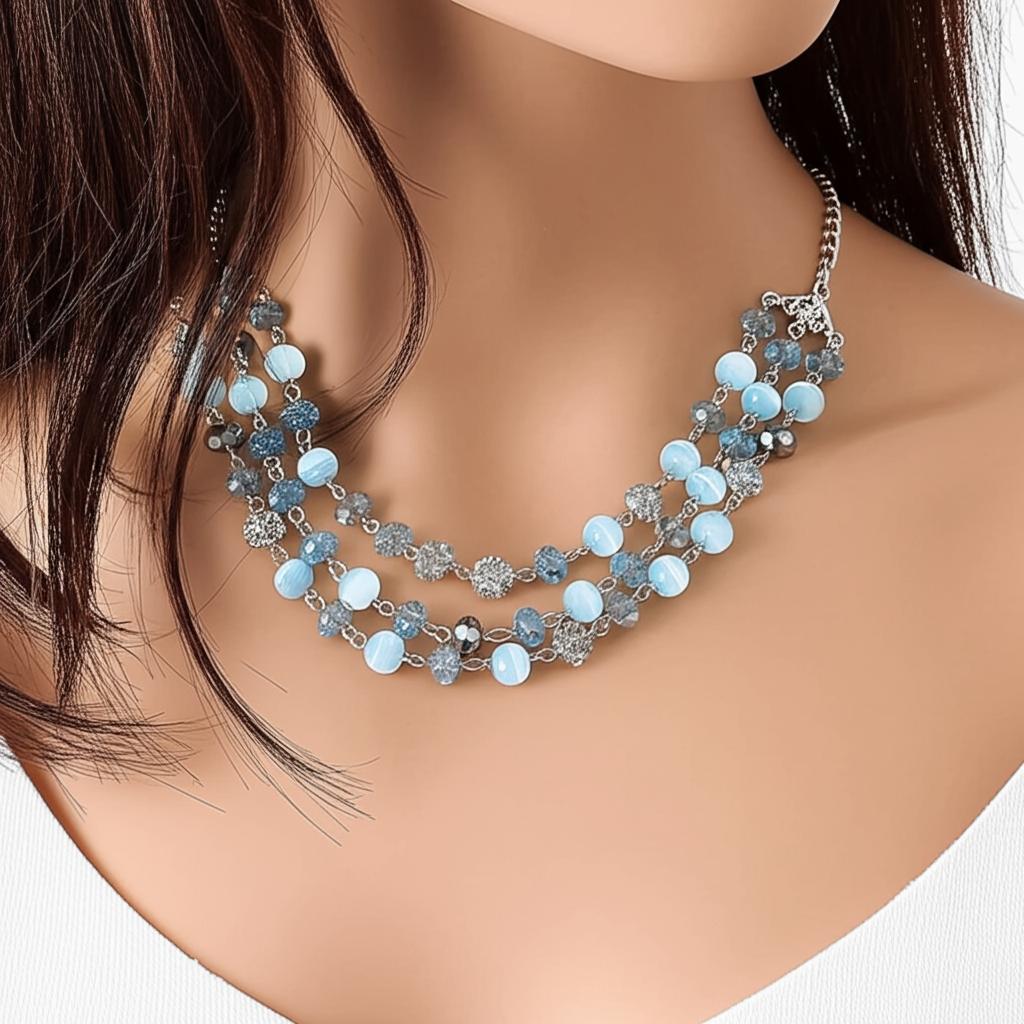 1928 Jewelry Multi Faceted Beaded Two Tier Chain Necklace 16" + 3" Extender