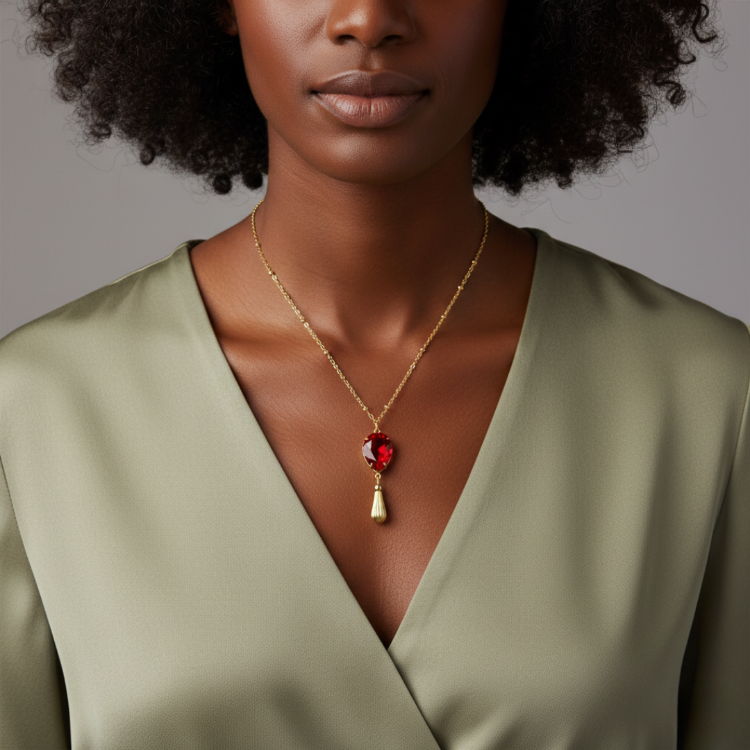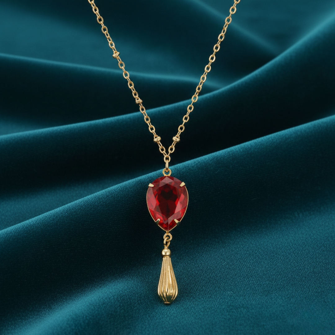 1928 Jewelry Romana Octagon Etched Glass & Crystal Pendant Necklace 18"