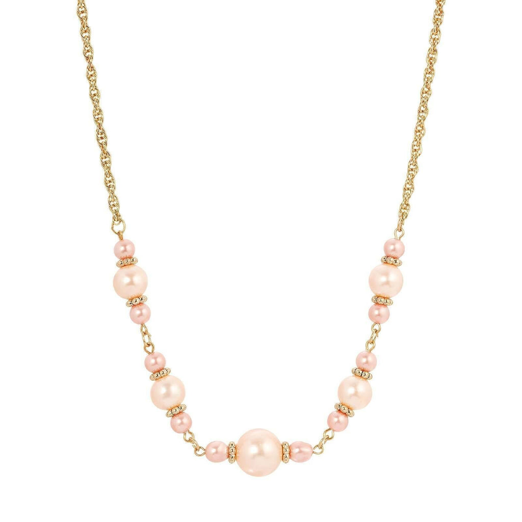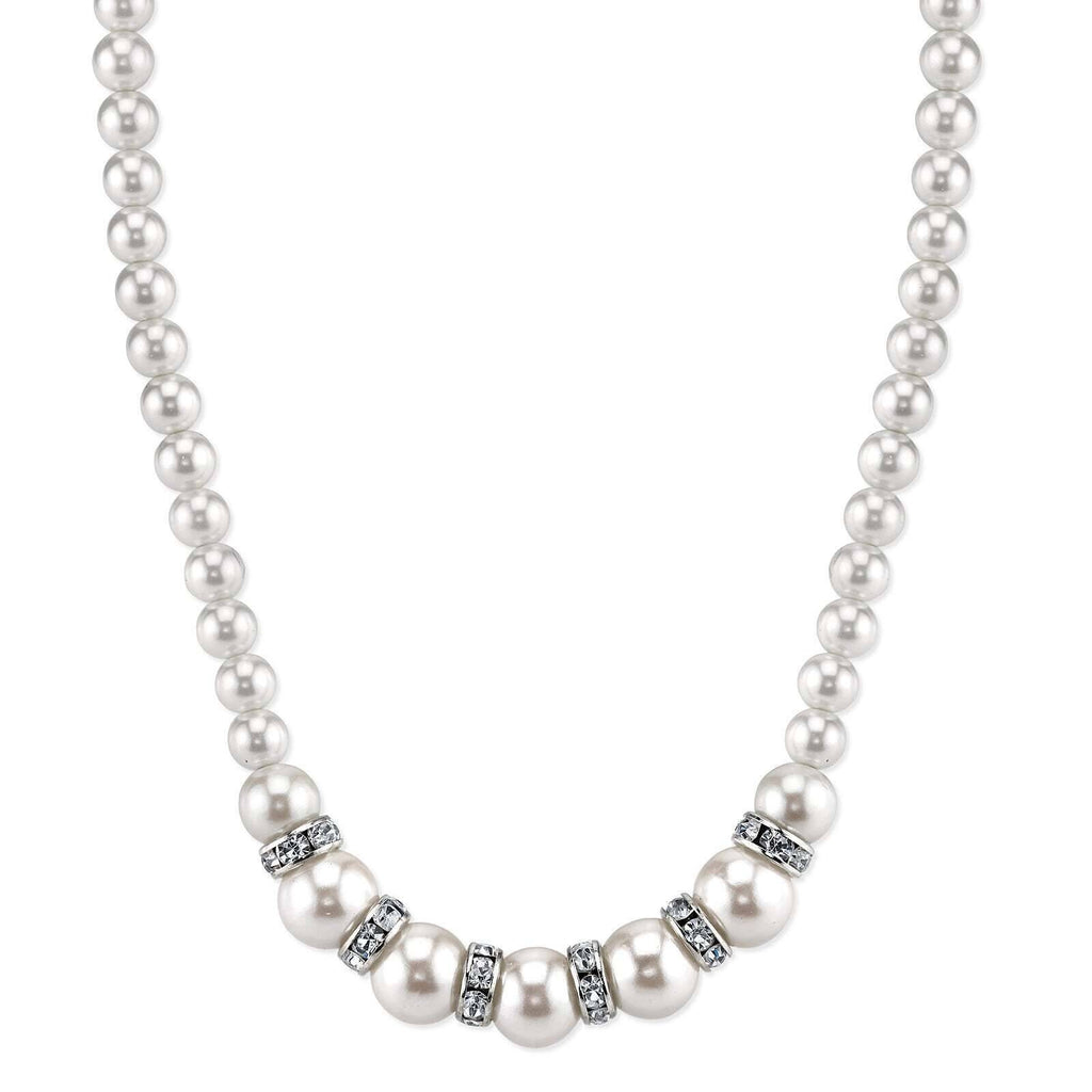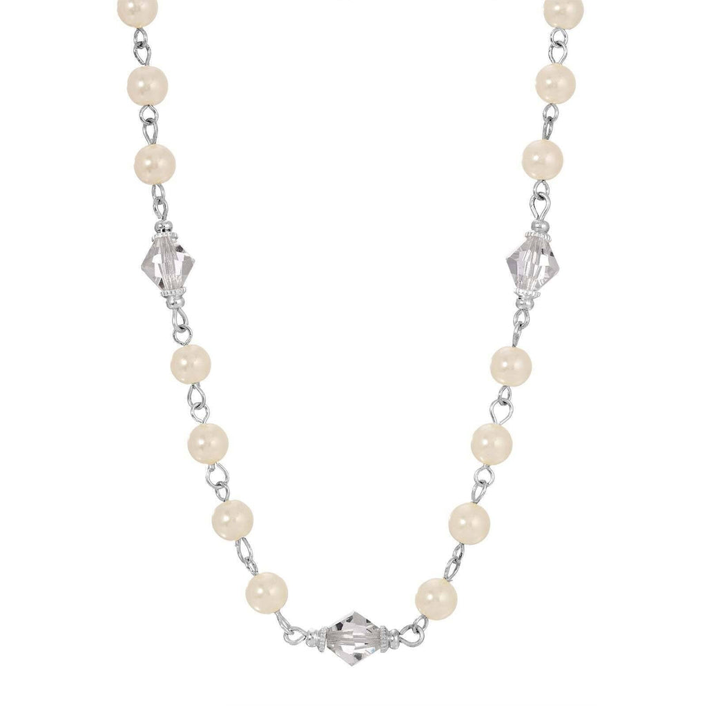 1928 Jewelry Oval Vivid Austrian Crystal Pendant 4mm Faux Pearl Strand Necklace 15" + 3" Extender