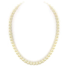 A classic must-have for any wardrobe, this necklace features an 8mm round faux pearl strand with lobster clasp dipped in 14k gold.