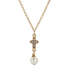Symbols Of Faith Crystal Cross Faux Pearl Elegance Pendant Necklace 16"