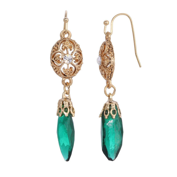 1928 Jewelry Icicle Drop Oval Filigree Crystal Accent Dangle Earrings