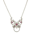 1928 Jewelry Pink Crystal Butterfly Badge & Eyeglass Holder Chain Necklace 28"